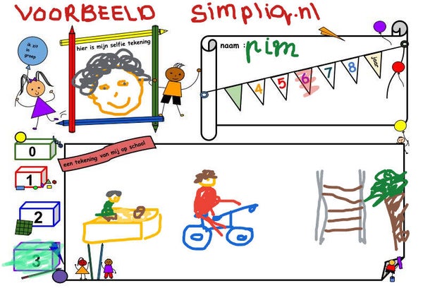 + Het kind heeft de vrijheid om aan de hand van het maken van tekeningen en het in kleuren over zich zelf te vertellen.